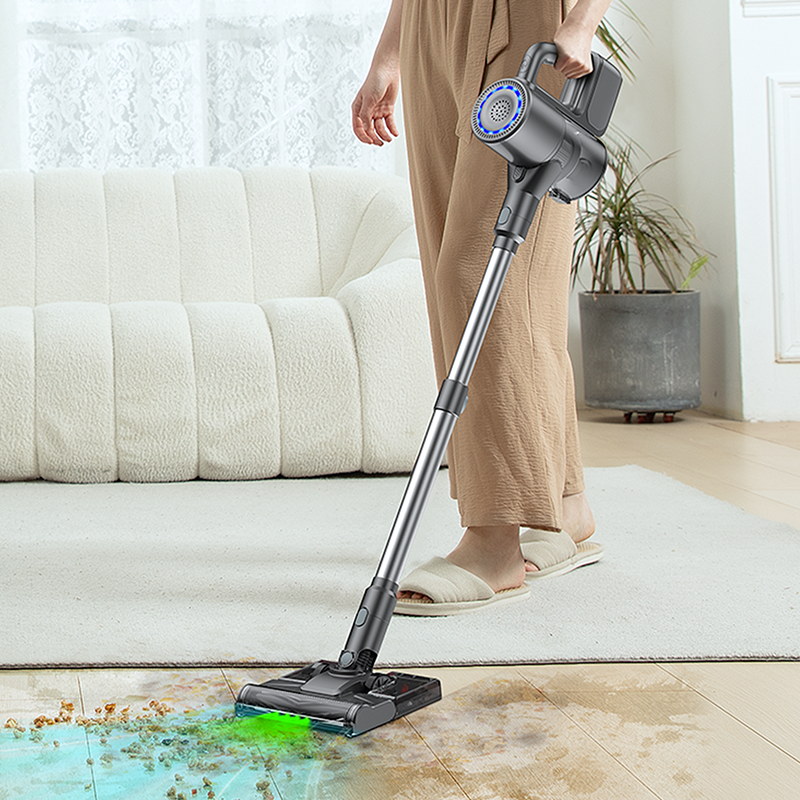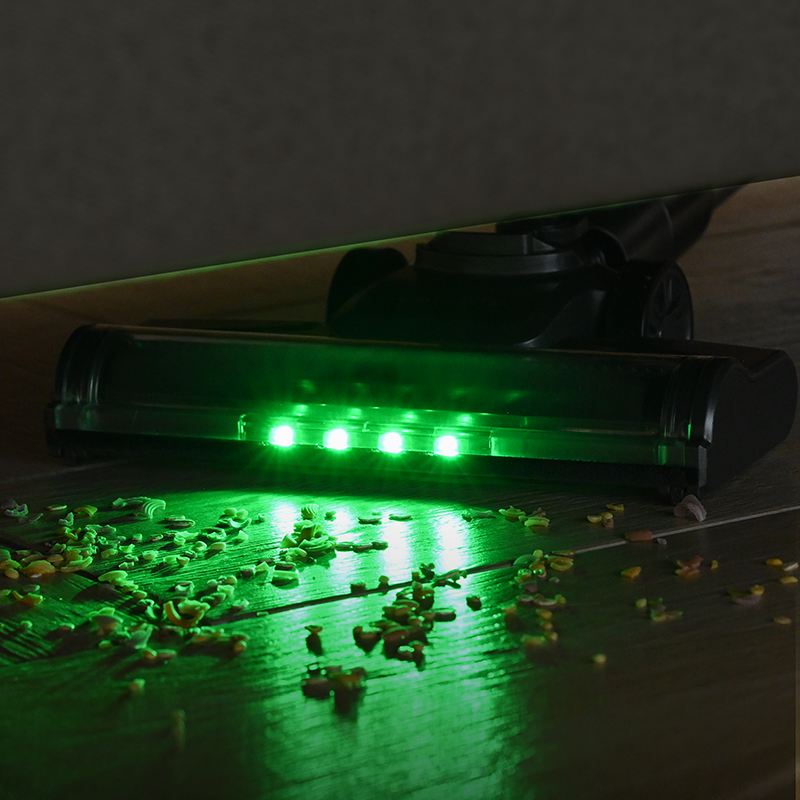 With green LED, even hidden dust can’t escape your clean. It accurately illuminates hidden debris in dark corners, under low furniture, and in tight crevices—revealing even fine particles invisible to the naked eye
