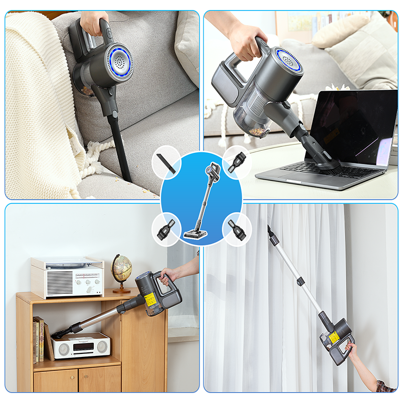 Equipped with multiple brushes and nozzles, it tackles every corner—from furniture gaps and stairs to carpets and car interiors. The telescopic tube extends your reach, while the cordless design gives you complete cleaning freedom