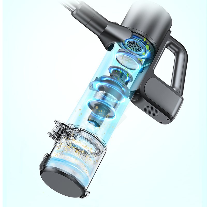 The 5-stage filtration with cyclone technology captures fine dust, prevents clogging for lasting suction and reduces maintenance